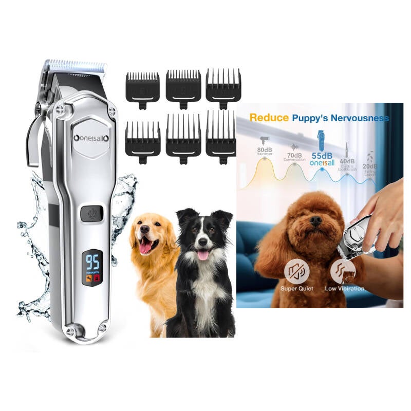 Highly rated and a best seller, this grooming clipper is robust enough to take on thick coats. Minimal noise, rechargeable cordless pet trimmer with stainless steel blades. Water resistant dog grooming shaver.