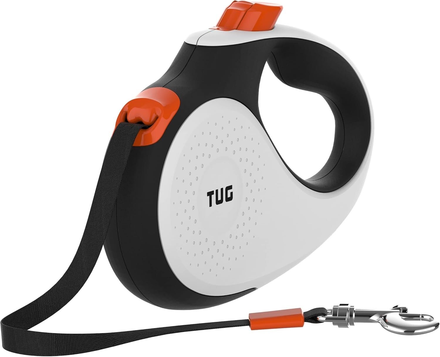 Tangle-Free Retractable Dog Lead for Up to 25 kg Dogs | 5 m Strong Nylon Tape/Ribbon | One-Handed Brake, Pause, Lock (Medium, White/Orange)